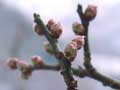早朝に降った雪は、昼過ぎには溶けていました。梅には、まだまだ寒いほうがよいのですが ・・・ |