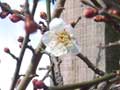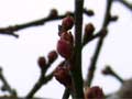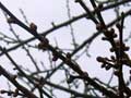 積雪3cm、日中の気温1度、梅のつぼみも、厳しい寒さにじっと耐えています。 |